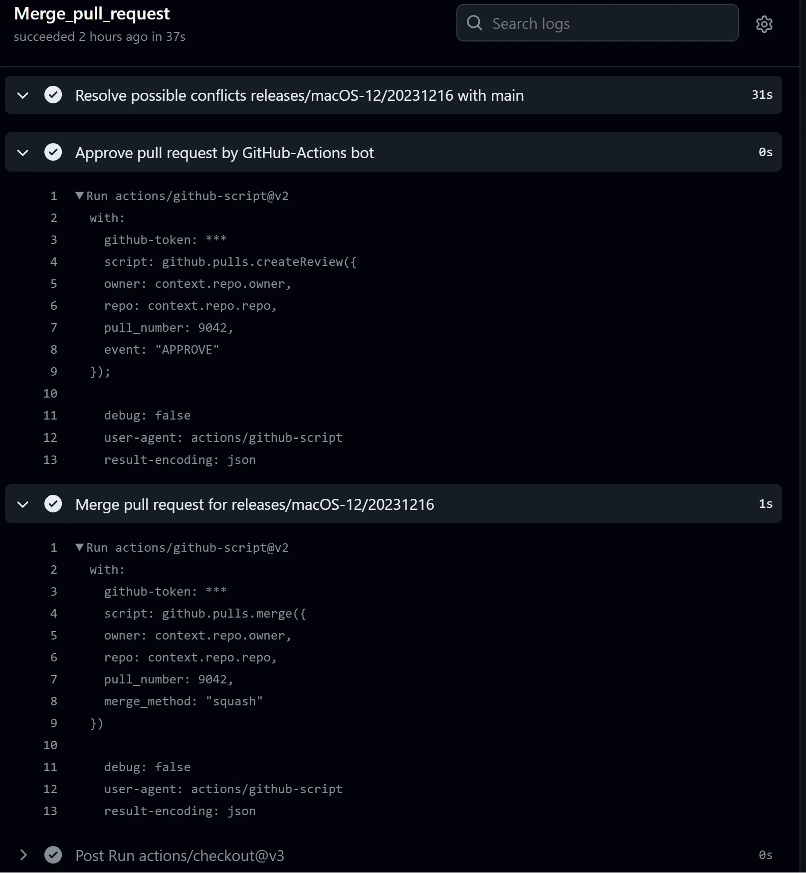 - name: Merge pull request for ${{ github.event.client_payload.ReleaseBranchName }}