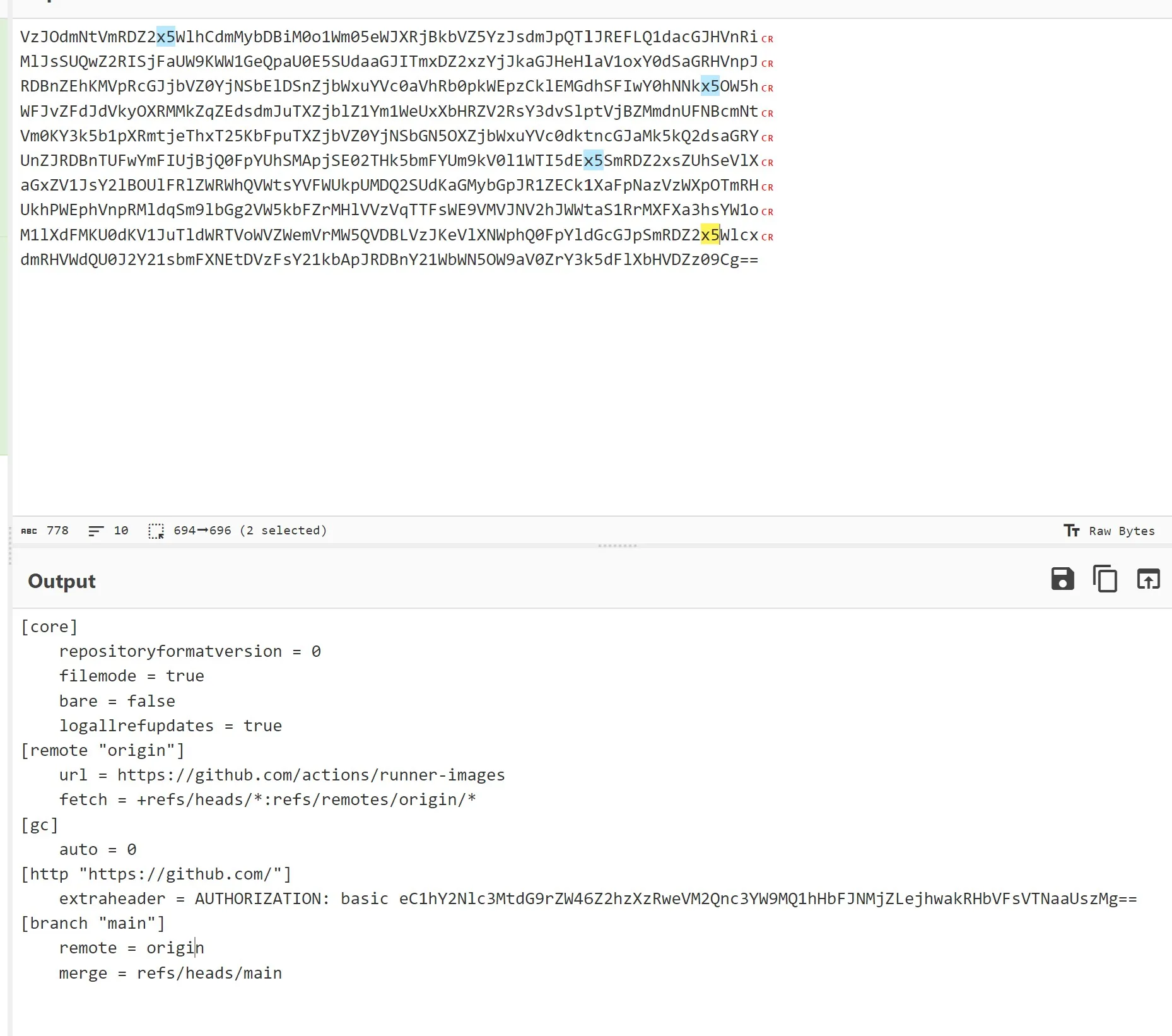 I would also be able to obtain the GITHUB_TOKEN from the .git/config file of the checked out repository because the workflow used actions/checkout with the default setting of persisting credentials.
