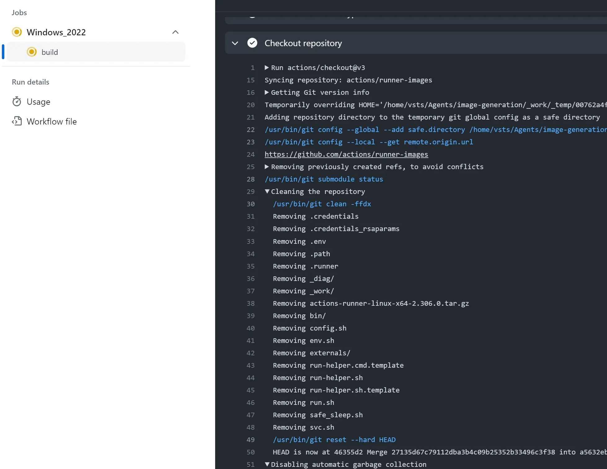You may ask: How can someone determine if a runner attached to a public repository is non-ephemeral? There isn’t a 100% clear way to determine this for all workflows, but there is one heuristic that is nearly always accurate. If the workflow contains the ‘actions/checkout’ GitHub action, then the run logs will contain a Cleaning the repository message. If this message is present, then it means that the runner is non-ephemeral, or the working directory of the runner is shared between builds - this is very rare. In either case, this is of interest.