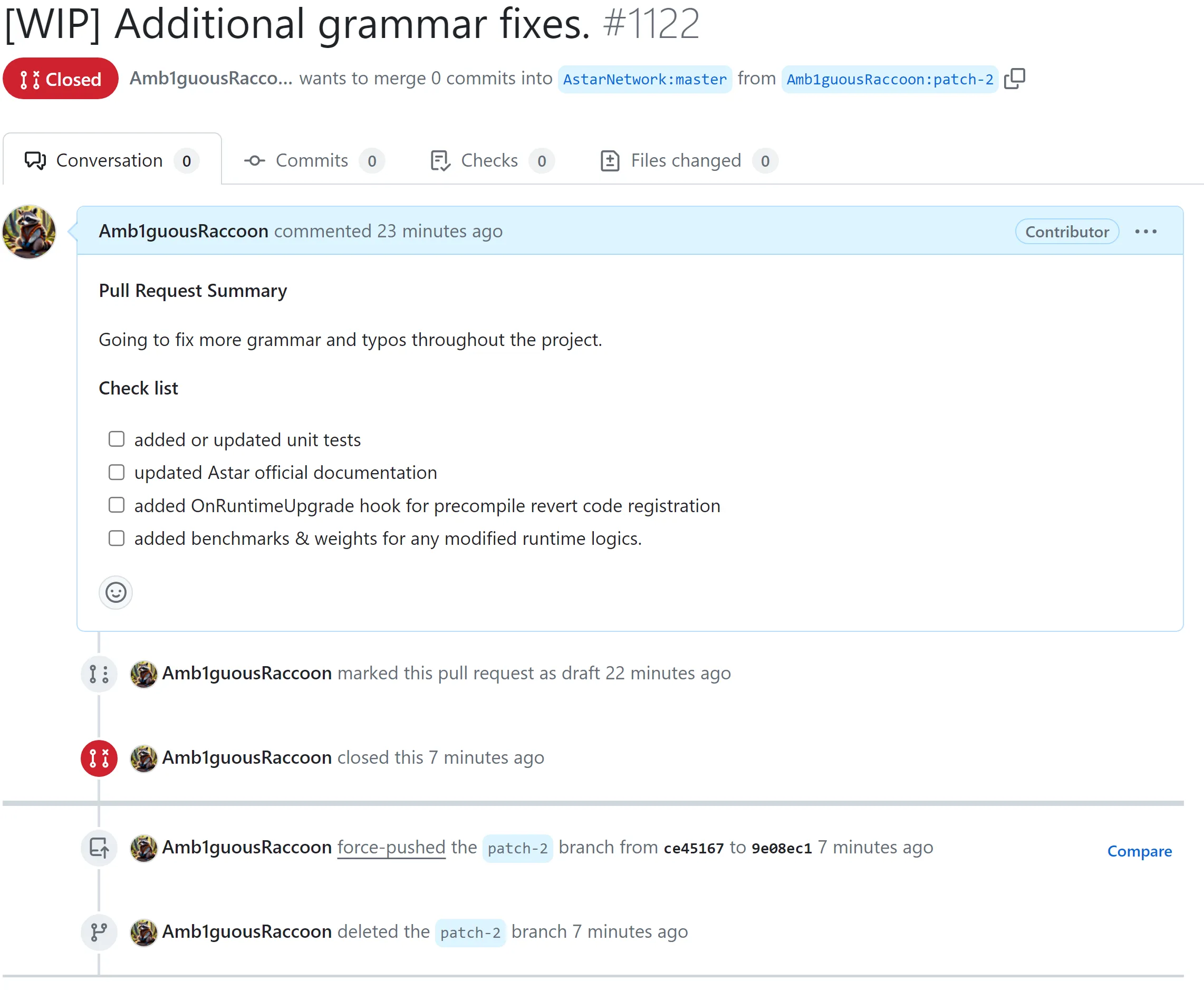 Once it finished, I closed the PR by force-pushing off my last two commits.