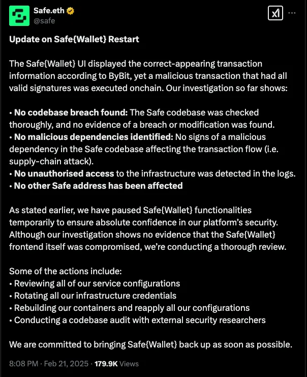 On February 21st, hackers associated with the North Korea based Lazarus group stole almost 1.4 Billion dollars in Ethereum from Bybit, the third largest cryptocurrency exchange in the world. Lazarus pulled off this hack through a sophisticated operation that tricked legitimate signers into approving a malicious smart contract interaction. Bybit’s signers saw a legitimate transaction, but they ended up signing a malicious one. The night of the attack, Safe quickly claimed that they were not hacked.